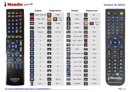 Below, we will show you the correspondence between each button on the original remote control and the button that performs the same function on the replacement remote control. In some cases, you may need to press the SHIFT key before pressing another button to perform certain actions. These additional functions are often not widely used and are included to facilitate understanding of the replacement remote control, or because the original remote control has more buttons than its equivalent.