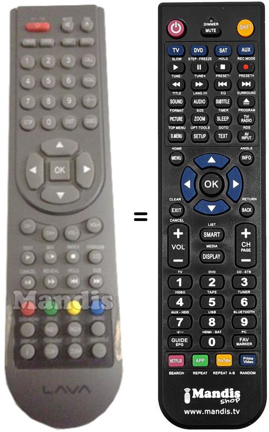 Remote control to replace the original and all its functions.