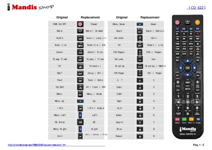 A document is included to help you use the new remote control easily, showing the button correspondence.