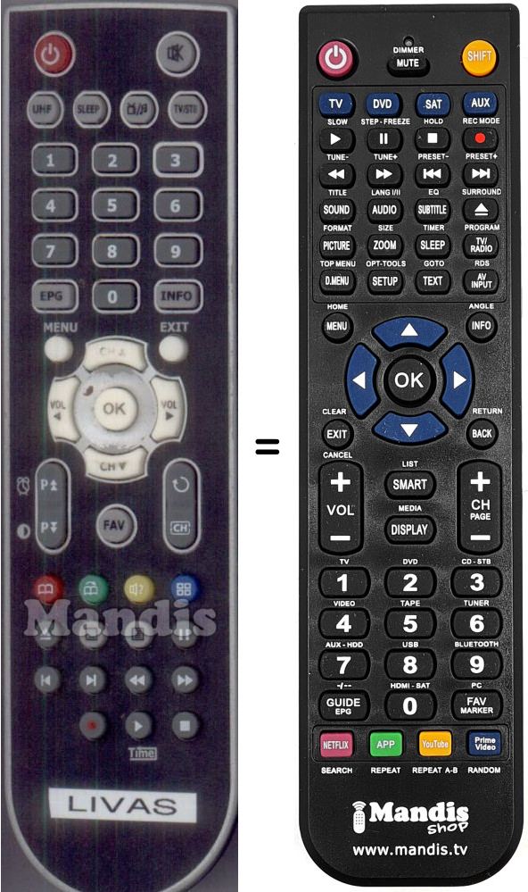 Remote control to replace the original Livas001 and all its functions.