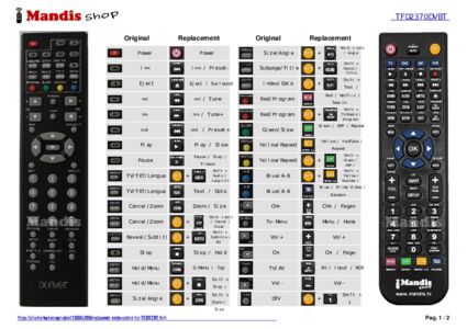 Below, we will show you the correspondence between each button on the original remote control and the button that performs the same function on the replacement remote control. In some cases, you may need to press the SHIFT key before pressing another button to perform certain actions. These additional functions are often not widely used and are included to facilitate understanding of the replacement remote control, or because the original remote control has more buttons than its equivalent.
