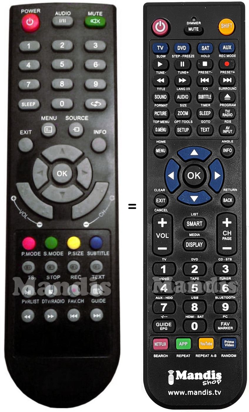 Below, we will show you the correspondence between each button on the original remote control and the button that performs the same function on the replacement remote control. In some cases, you may need to press the SHIFT key before pressing another button to perform certain actions. These additional functions are often not widely used and are included to facilitate understanding of the replacement remote control, or because the original remote control has more buttons than its equivalent.