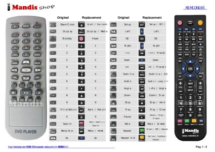 Below, we will show you the correspondence between each button on the original remote control and the button that performs the same function on the replacement remote control. In some cases, you may need to press the SHIFT key before pressing another button to perform certain actions. These additional functions are often not widely used and are included to facilitate understanding of the replacement remote control, or because the original remote control has more buttons than its equivalent.