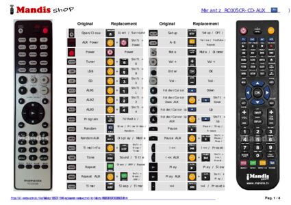 Below, we will show you the correspondence between each button on the original remote control and the button that performs the same function on the replacement remote control. In some cases, you may need to press the SHIFT key before pressing another button to perform certain actions. These additional functions are often not widely used and are included to facilitate understanding of the replacement remote control, or because the original remote control has more buttons than its equivalent.