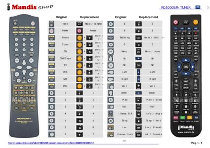 Below, we will show you the correspondence between each button on the original remote control and the button that performs the same function on the replacement remote control. In some cases, you may need to press the SHIFT key before pressing another button to perform certain actions. These additional functions are often not widely used and are included to facilitate understanding of the replacement remote control, or because the original remote control has more buttons than its equivalent.
