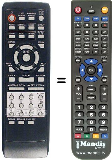 Below, we will show you the correspondence between each button on the original remote control and the button that performs the same function on the replacement remote control. In some cases, you may need to press the SHIFT key before pressing another button to perform certain actions. These additional functions are often not widely used and are included to facilitate understanding of the replacement remote control, or because the original remote control has more buttons than its equivalent.