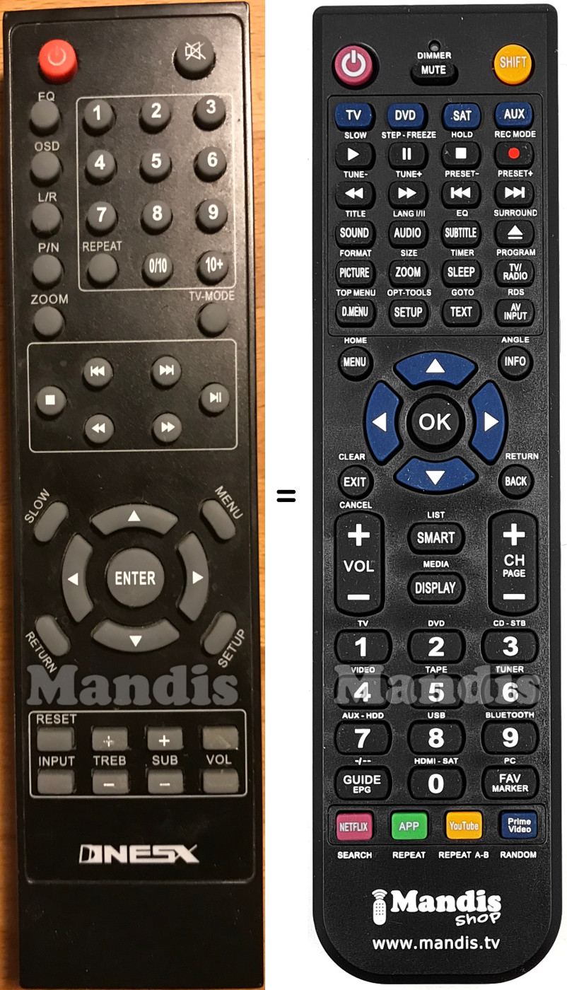 Below, we will show you the correspondence between each button on the original remote control and the button that performs the same function on the replacement remote control. In some cases, you may need to press the SHIFT key before pressing another button to perform certain actions. These additional functions are often not widely used and are included to facilitate understanding of the replacement remote control, or because the original remote control has more buttons than its equivalent.