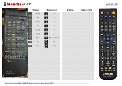 Below, we will show you the correspondence between each button on the original remote control and the button that performs the same function on the replacement remote control. In some cases, you may need to press the SHIFT key before pressing another button to perform certain actions. These additional functions are often not widely used and are included to facilitate understanding of the replacement remote control, or because the original remote control has more buttons than its equivalent.