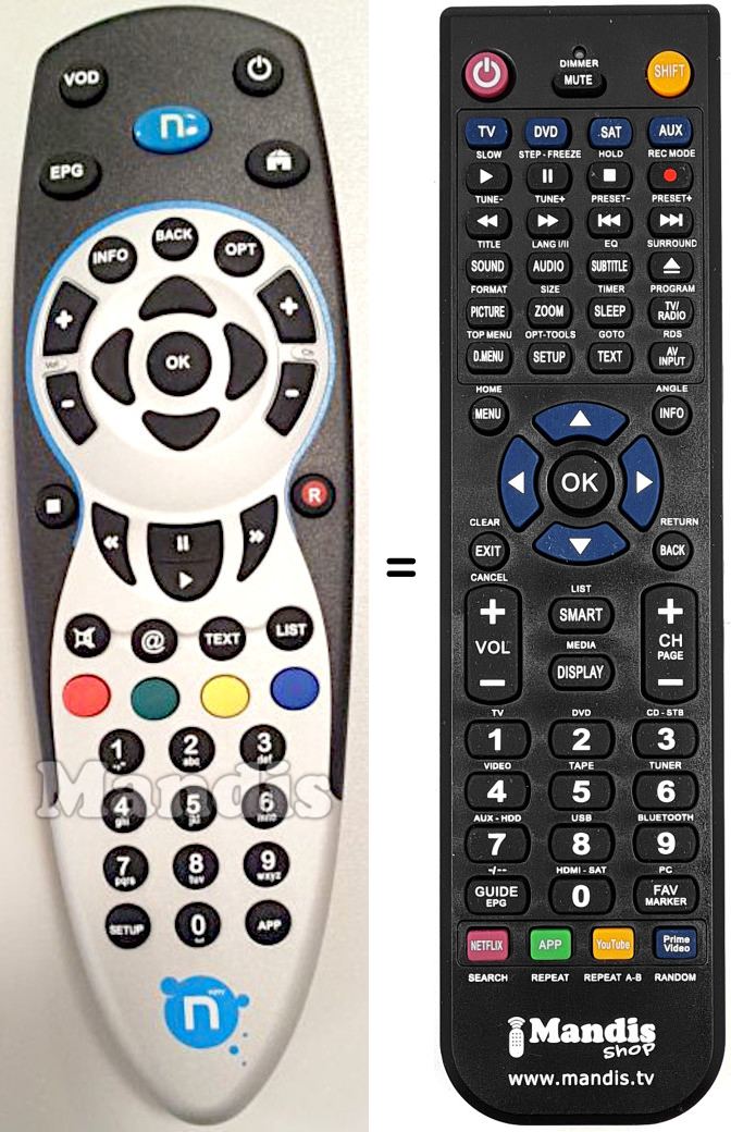 Remote control to replace the original and all its functions. It is not a universal remote but a substitute for the original. You will receive the remote ready to use: you only need to install the batteries. It is not necessary to program it. We offer you our full guarantee that the remote will perform all the functions of the original.