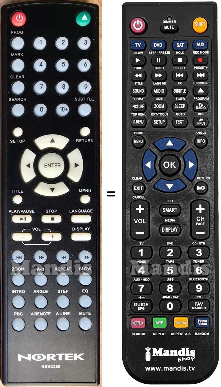 This remote control fully replaces your NDVX280 and offers all the functions of the original.