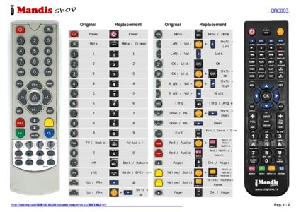 Below, we will show you the correspondence between each button on the original remote control and the button that performs the same function on the replacement remote control. In some cases, you may need to press the SHIFT key before pressing another button to perform certain actions. These additional functions are often not widely used and are included to facilitate understanding of the replacement remote control, or because the original remote control has more buttons than its equivalent.