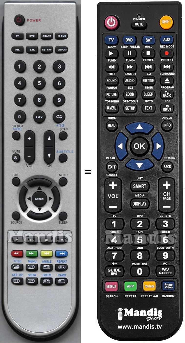 A document is included to help you use the new remote control easily, showing the button correspondence.