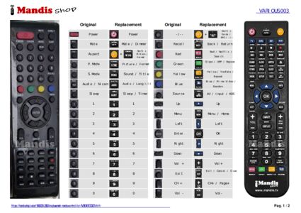 Below, we will show you the correspondence between each button on the original remote control and the button that performs the same function on the replacement remote control. In some cases, you may need to press the SHIFT key before pressing another button to perform certain actions. These additional functions are often not widely used and are included to facilitate understanding of the replacement remote control, or because the original remote control has more buttons than its equivalent.