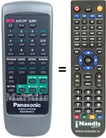 This remote control replaces most of the functions of your N2QAGB000010. It is not a universal remote control, but a copy with most of the buttons and functions of your original.