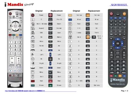This remote control fully replaces your N2QAYB000048 and offers all the functions of the original.