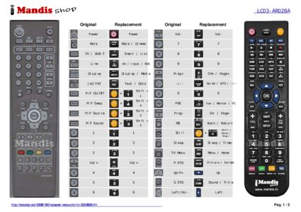 This remote control fully replaces your LC03-AR028A and offers all the functions of the original.