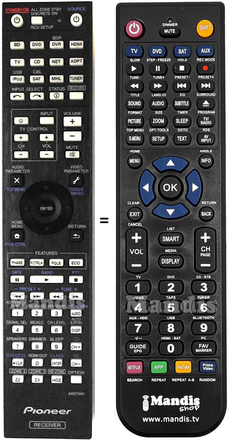 This remote control fully replaces your AXD7694 (8300769400010-IL) and offers all the functions of the original.