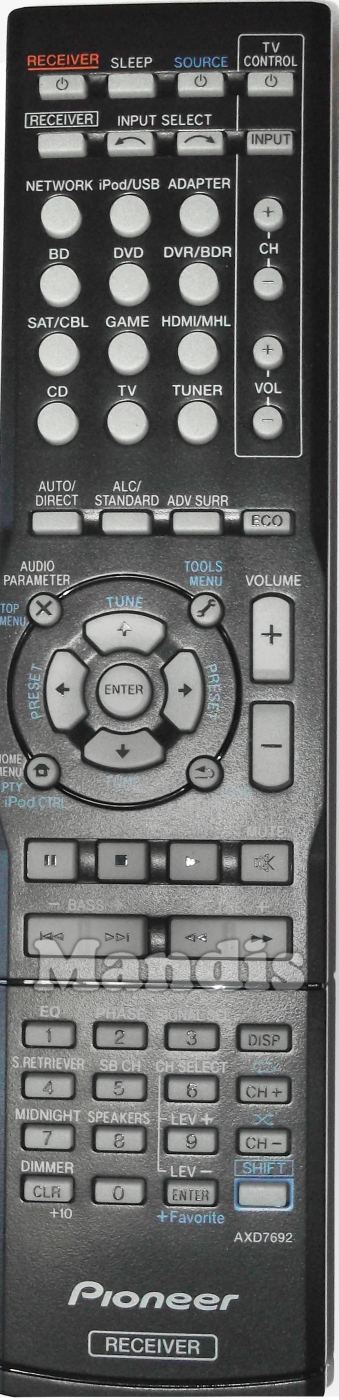 Replacement remote controls that replace in all its functions the remote PIONEER AXD7692 (8300769200010-IL):