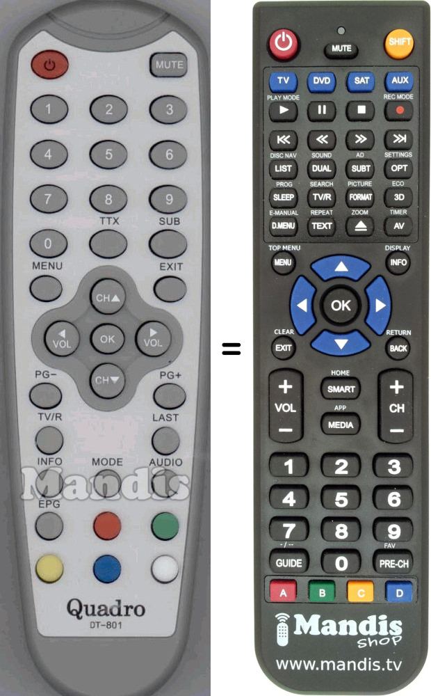 This remote control fully replaces your DT-801 and offers all the functions of the original.