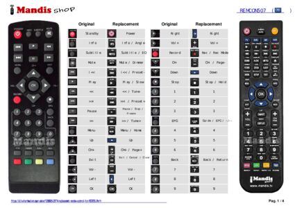Below, we will show you the correspondence between each button on the original remote control and the button that performs the same function on the replacement remote control. In some cases, you may need to press the SHIFT key before pressing another button to perform certain actions. These additional functions are often not widely used and are included to facilitate understanding of the replacement remote control, or because the original remote control has more buttons than its equivalent.
