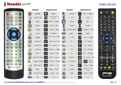 This remote control fully replaces your MPIX358HD and offers all the functions of the original.