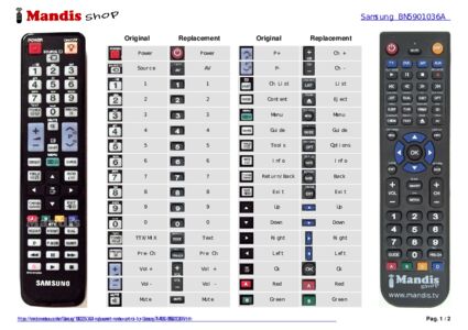 Below, we will show you the correspondence between each button on the original remote control and the button that performs the same function on the replacement remote control. In some cases, you may need to press the SHIFT key before pressing another button to perform certain actions. These additional functions are often not widely used and are included to facilitate understanding of the replacement remote control, or because the original remote control has more buttons than its equivalent.
