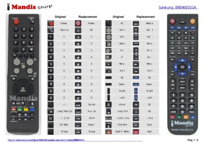 This remote control fully replaces your MI-BN5900531A and offers all the functions of the original.
