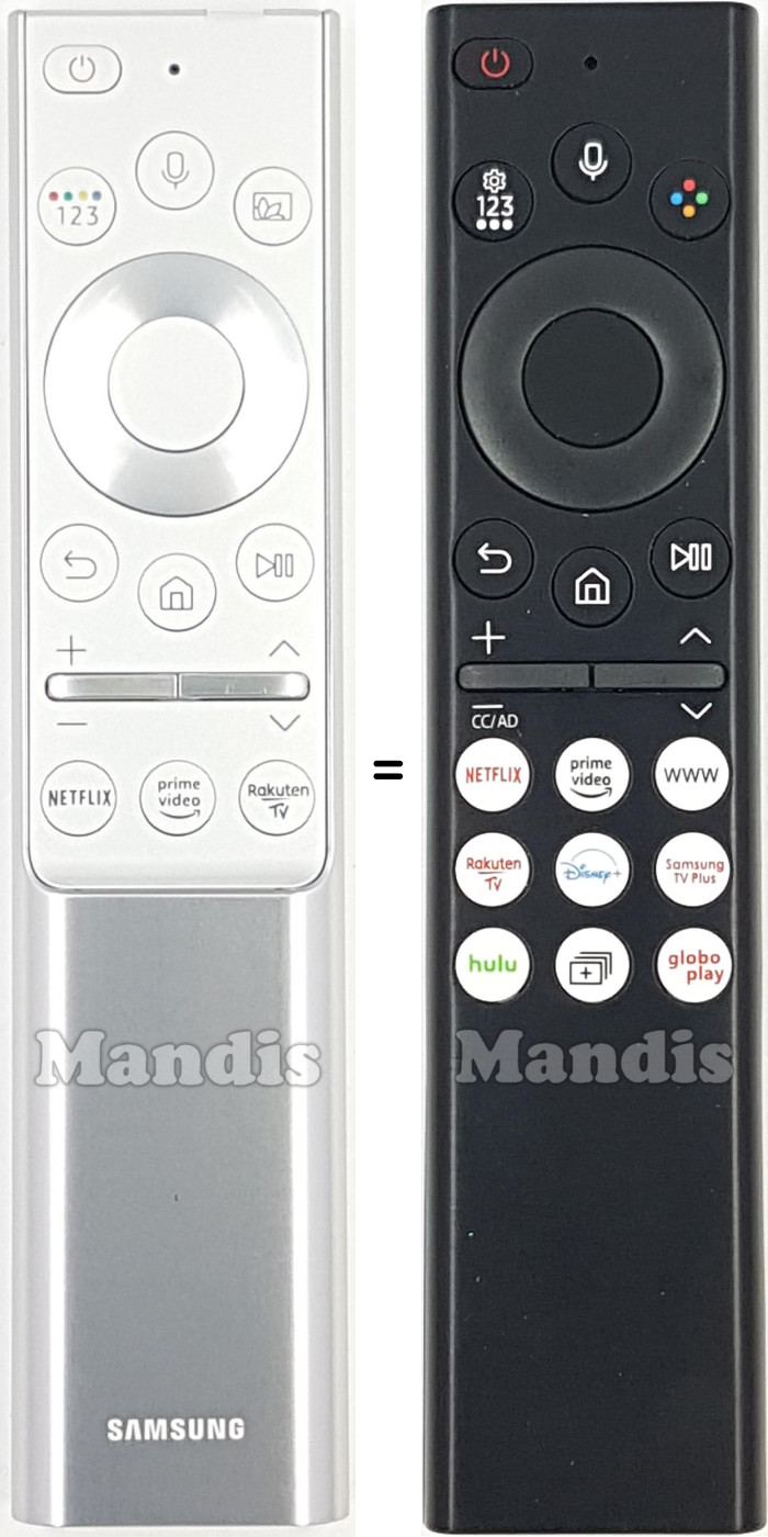 Modernize your Samsung Smart TV with this elegant and functional remote control. It offers complete control and comfort thanks to its voice technology and ergonomic design. It works perfectly with all Samsung TVs with Bluetooth, ensuring a reliable and powerful connection. Featuring direct access buttons for your favorite apps like Netflix and Prime Video.