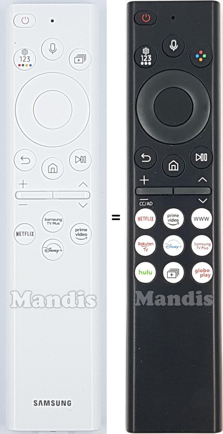 Modernize your Samsung Smart TV with this elegant and functional remote control. It offers complete control and comfort thanks to its voice technology and ergonomic design. It works perfectly with all Samsung TVs with Bluetooth, ensuring a reliable and powerful connection. Featuring direct access buttons for your favorite apps like Netflix and Prime Video.