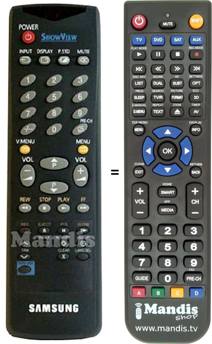 Replacement remote control Samsung AH59-01907KReplacement remote control Samsung AH59-01907KAvailable in stock22.73 € (VAT included)SamsungFor HT-X710Replacement remote control Samsung BN59-01052AReplacement remote control Samsung BN59-01052AAvailable in stock22.73 € (VAT included)SamsungFor BN59-01052A, UE 40 C 7000, UE 40 C 8000, UE46C7000, UE46C8000, UE 50 C 7000, UE55C7000, UE55C8000, UE 63 C 7000Replacement remote control Samsung AH59-02350AReplacement remote control Samsung AH59-02350AAvailable in stock22.73 € (VAT included)SamsungFor HTD7100Replacement remote control Samsung GL59-00160BReplacement remote control Samsung GL59-00160BAvailable in stock22.73 € (VAT included)SamsungFor GX-SM660SM/ZG, GX-SM650SJ/ZG, GX-SM660SM, GX-SM650SJReplacement remote control Samsung AH59-02767CReplacement remote control Samsung AH59-02767CAvailable in stock22.73 € (VAT included)SamsungFor HW-N850Replacement remote control Samsung AH59-02144SReplacement remote control Samsung AH59-02144SAvailable in stock22.73 € (VAT included)SamsungFor HTBD1250, HTBD3252, HTBD1200Original remote control SAMSUNG AH81-11678AOriginal remote control SAMSUNG AH81-11678AAvailable in stock42.50 € (VAT included)SamsungFor Soundbar HW-A450, HWT420ZF, HW-T450 (HW-T450/ZA), HW-T420/ZG, HW-T420 (HW-T420/XN), HW-T440 (HW-T440/XE), HW-T420 (HW-T420/EN), ...Replacement remote control Samsung AK59-00074AReplacement remote control Samsung AK59-00074AAvailable in stock22.73 € (VAT included)SamsungFor DVDV6800XEF, DVDV6800XEG, DVDV5600COM, DVDV5600XEB, DVDV5600XEF, DVDV5600XEG, DVDV6600XEF, DVDV6600XEG, DVDV6700XEB, ...Replacement remote control Samsung BN59-01323AReplacement remote control Samsung BN59-01323AAvailable in stock22.73 € (VAT included)SamsungFor HG43EF690DBXENReplacement remote control Samsung DJ96-00114ZReplacement remote control Samsung DJ96-00114ZAvailable in stock22.73 € (VAT included)SamsungFor VCR8980L3K/XETOriginal remote control SAMSUNG BN59-01323AOriginal remote control SAMSUNG BN59-01323AAvailable in stock20.79 € (VAT included)SamsungFor Televisions HG43EF690DBXEN, HG43EJ690YBXXU, UE32D4000NWXXC, UE46D5000PWXBT, HG32EA590LSXXH, HG40ED790QBXEN, UE32D5000PWXTK, ...Replacement remote control Samsung AK59-00071FReplacement remote control Samsung AK59-00071FAvailable in stock22.73 € (VAT included)SamsungFor DVD-P 380Replacement remote control Samsung 00017BReplacement remote control Samsung 00017BAvailable in stock22.73 € (VAT included)SamsungFor 00017 B, SV 2215 X, SV 231 X, SV 2313 XV, SV 2315 XV, SV 235 XV, SV 421 X, SV 431 X, SV 4313 XV, SV 435 XV, SV 621 X, ...Replacement remote control Samsung AA59-00382AReplacement remote control Samsung AA59-00382AAvailable in stock22.73 € (VAT included)SamsungFor CB 21 H 12 TSX/XEC, CR21N112Z, WS32Z409TQXXEC, 510MPSILVER, SYNCMASTER 710 MP, LA52A650A1R, LE 19 R 71 WX/XEH, LE20S81BXXEH, ...Replacement remote control Samsung AA59-00221BReplacement remote control Samsung AA59-00221BAvailable in stock22.73 € (VAT included)SamsungFor TX14N5F3X, TX14N5F3XSEC, TX14N54X/XEC, TX14N5F4XXEC, TX 14 P1 F, TX 14 P7 F 4, TX 20 P 1 DF, WS 28 M 66, AA 59-00221 B, ...Original remote control SAMSUNG BN59-01363JOriginal remote control SAMSUNG BN59-01363JAvailable in stock41.88 € (VAT included)SamsungFor Televisions UE60AU8005KXXC, UE55AU8000KXXU, UE43AU8000K (UE43AU8000KXXU), GU65AU8079UXZG, UE50AU8070UXZT, UE85AU8000K (UE85AU8000KXXN), ...Replacement remote control Samsung BN59-00533AReplacement remote control Samsung BN59-00533AAvailable in stock22.73 € (VAT included)SamsungFor CB 14 Y 52 TBX/XEC, CB20F32TSXXEC, CB 20 H 12 TSX/XEC, CF5320ZSEFP1D, CW21Z573N7XXEC, CW25C33W, CZ20F32T, CZ21A8VW8X, ...Replacement remote control AC59-00016EReplacement remote control AC59-00016EAvailable in stock22.73 € (VAT included)SamsungReplacement remote control Samsung RC2530SCReplacement remote control Samsung RC2530SCAvailable in stock22.73 € (VAT included)SamsungFor LE37S86BDXXEE LE37S86BD, DV-SV 9 C, DV-SV 92 S, DVD-SV 80 S, DVD-SV 90 SReplacement remote control Samsung AA59-10105JReplacement remote control Samsung AA59-10105JAvailable in stock22.73 € (VAT included)SamsungFor TVP3380F, TVP5040F, TVP5050FST, CF 5369 T, TVP 3350 X, TVP 5050 XT, AA59-10105J, TB331VBZ1S, TVP3350F, TVP3350XS, ...