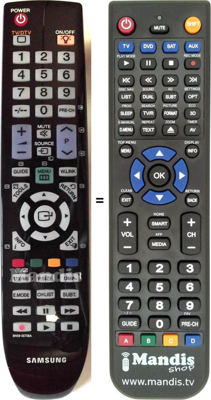 Replacement remote control Samsung BN59-00706AAvailable in stock22.73 € (VAT included)