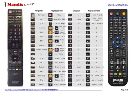 Below, we will show you the correspondence between each button on the original remote control and the button that performs the same function on the replacement remote control. In some cases, you may need to press the SHIFT key before pressing another button to perform certain actions. These additional functions are often not widely used and are included to facilitate understanding of the replacement remote control, or because the original remote control has more buttons than its equivalent.
