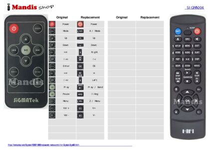 Below, we will show you the correspondence between each button on the original remote control and the button that performs the same function on the replacement remote control. In some cases, you may need to press the SHIFT key before pressing another button to perform certain actions. These additional functions are often not widely used and are included to facilitate understanding of the replacement remote control, or because the original remote control has more buttons than its equivalent.