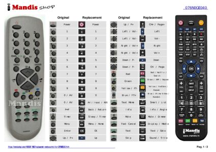 This remote control fully replaces your 076NOGE040 and offers all the functions of the original.