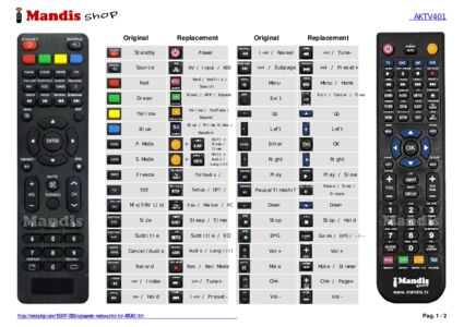 A document is included to help you use the new remote control easily, showing the button correspondence.