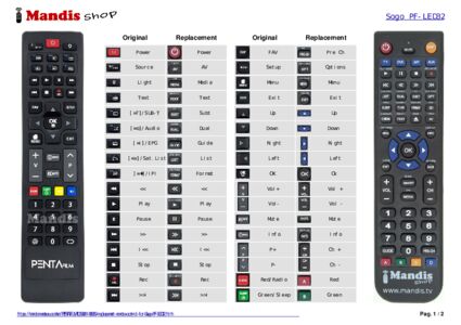 Below, we will show you the correspondence between each button on the original remote control and the button that performs the same function on the replacement remote control. In some cases, you may need to press the SHIFT key before pressing another button to perform certain actions. These additional functions are often not widely used and are included to facilitate understanding of the replacement remote control, or because the original remote control has more buttons than its equivalent.