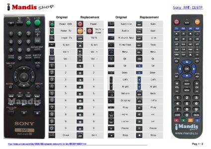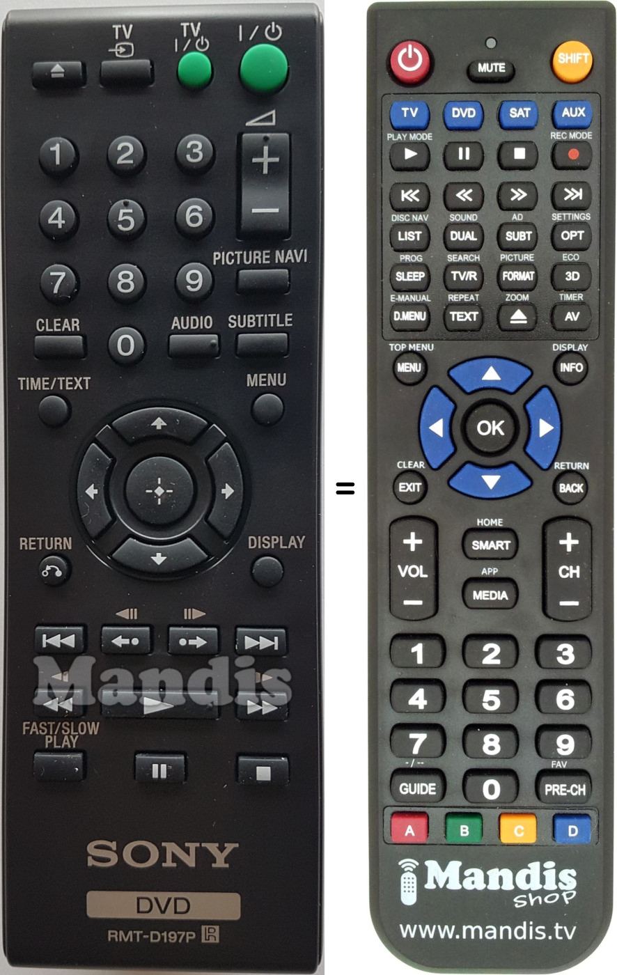 This remote control fully replaces your RMT-D197P (148942911) and offers all the functions of the original.