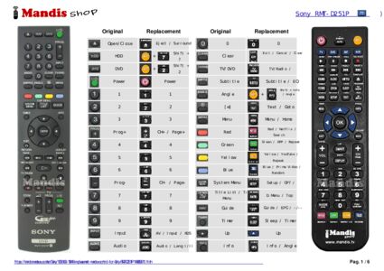 Below, we will show you the correspondence between each button on the original remote control and the button that performs the same function on the replacement remote control. In some cases, you may need to press the SHIFT key before pressing another button to perform certain actions. These additional functions are often not widely used and are included to facilitate understanding of the replacement remote control, or because the original remote control has more buttons than its equivalent.