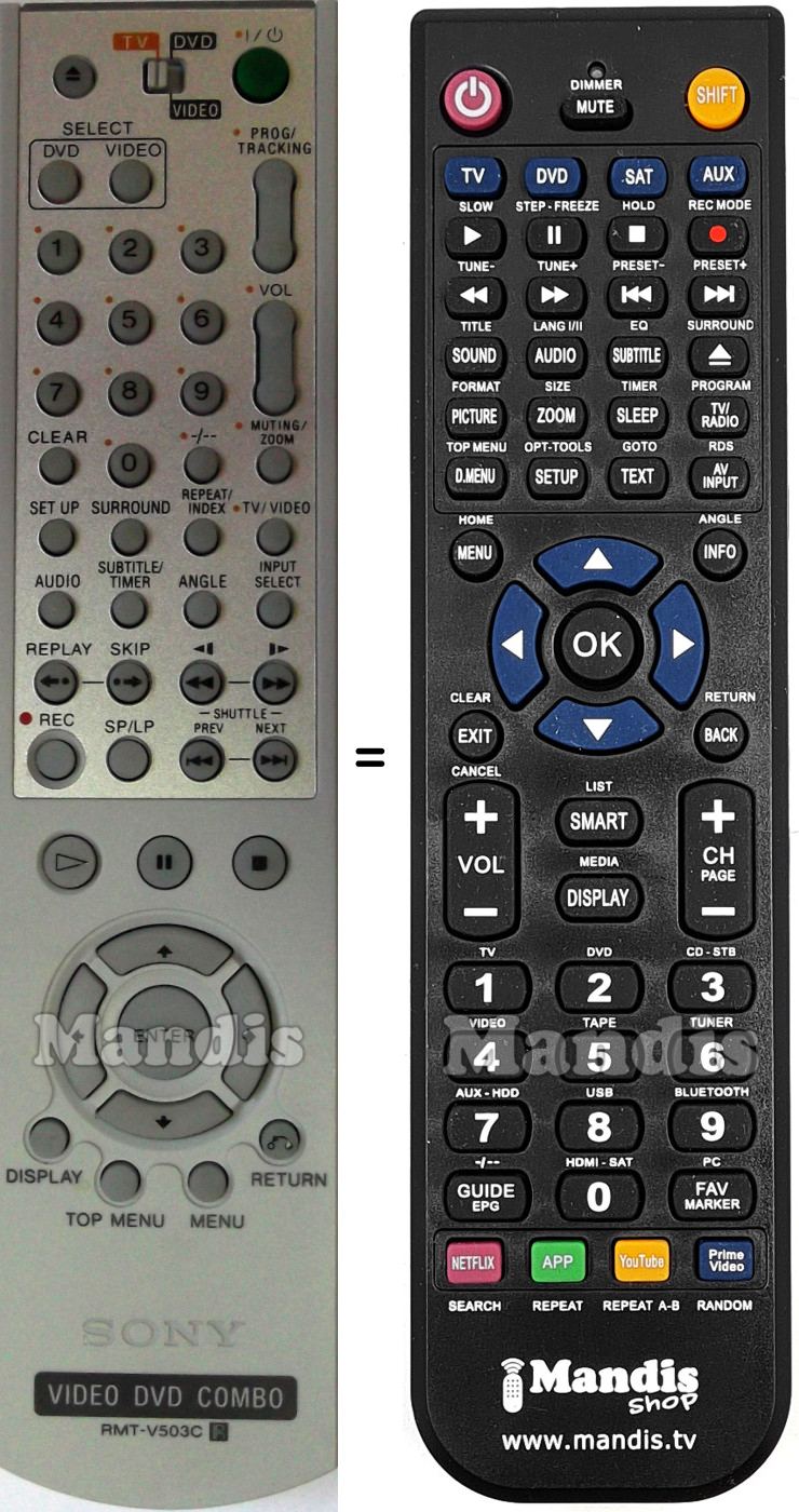 This remote control fully replaces your RMT-V 503 C (988506747) and offers all the functions of the original.