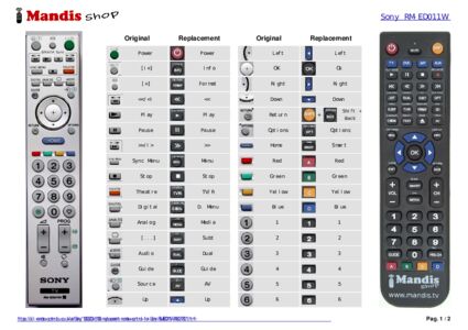 This remote control fully replaces your RM-ED011W (148077821) and offers all the functions of the original.