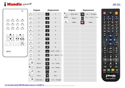 This remote control fully replaces your RM-501 and offers all the functions of the original.