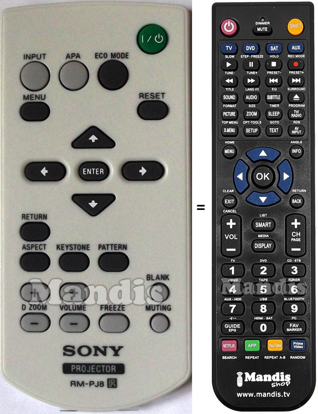 Replacement remote control Sony RM-U95Replacement remote control Sony RM-U95Available in stock22.73 € (VAT included)SonyFor MHC-EX9AV-TAPEA, MHC-EX9AVOriginal remote control SONY RMT-VB100I (149290121)Original remote control SONY RMT-VB100I (149290121)Available in stock67.07 € (VAT included)SonyFor BDP-S4500, BDP-S 1500, BDP-S5500, BDP-S6500, BDP-S 3500, bdp-s2500, BDP-BX150, BDP-BX650, BDP-BX550, BDP-BX350Replacement remote control Sony RM-ADU003Replacement remote control Sony RM-ADU003Available in stock22.73 € (VAT included)SonyFor DAV-DZ 110, RM-ADU 003, DAVDZ410Replacement remote control Sony RMT-CDS11IPReplacement remote control Sony RMT-CDS11IPAvailable in stock22.73 € (VAT included)SonyFor ICF-DS11iP, ICFDS11IPSP5Replacement remote control Sony RM-ANU160Replacement remote control Sony RM-ANU160Available in stock22.73 € (VAT included)SonyFor HTCT60BT, HT-CT60, SACT60Replacement remote control Sony RMF-TX500Replacement remote control Sony RMF-TX500Available in stock22.73 € (VAT included)SonyFor KD-85XF8596, KD-55XF9005, KD-55XF8596, KD-49XF8505, KD-43XF8505, KD-65AF8, KD-49XF7596, KD-75XF9005, KD55XF8577, KD-65XF8596, ...Replacement remote control RM-S11Replacement remote control RM-S11Available in stock22.73 € (VAT included)SonyReplacement remote control Sony RM-PJ8Replacement remote control Sony RM-PJ8Available in stock22.73 € (VAT included)SonyFor VPL-SW536, VPL-DW122, VPL-EW255, VPL-SW631, VPL-DX120, VPL-SW630C, VPL-EX295, VPL-EW276, VPL-SW536C, VPL-EX226, VPL-DX142, ...Replacement remote control RM-PJ24Replacement remote control RM-PJ24Available in stock22.73 € (VAT included)SonyReplacement remote control Sony RM-AAU020Replacement remote control Sony RM-AAU020Available in stock22.73 € (VAT included)SonyFor STRDH 500 CEL, STR-DH500Replacement remote control Sony RM-AMU214Replacement remote control Sony RM-AMU214Available in stock22.73 € (VAT included)SonyFor CMT-SBT40D, HCD-SBT40DReplacement remote control Sony RMT-D116PReplacement remote control Sony RMT-D116PAvailable in stock22.73 € (VAT included)SonyFor DVP-S 535 D, DVP-S 536 DReplacement remote control Sony RMT-D177PReplacement remote control Sony RMT-D177PAvailable in stock22.73 € (VAT included)SonyFor RMT-D177PReplacement remote control Sony RM-GA019Replacement remote control Sony RM-GA019Available in stock22.73 € (VAT included)SonyFor 72 SF CONTURA, KLV-32 BX 300, KLV-40 BX 401, KLV-40 BX 400, KLV-32 BX 301, KLV-26 BX 301, KLV-26 BX 300, KLV-22 BX 301, ...Replacement remote control Sony RMT-AH200UReplacement remote control Sony RMT-AH200UAvailable in stock22.73 € (VAT included)SonyFor HT-RT3, HT-CT390, HT-RT4, HT-RT40, SA-CT390, SA-WRT3Replacement remote control RMT-D232PReplacement remote control RMT-D232PAvailable in stock22.73 € (VAT included)SonyReplacement remote control Sony RMT-B120PReplacement remote control Sony RMT-B120PAvailable in stock22.73 € (VAT included)SonyFor BDP-S185, BDP-S186, BDP-S4100, BDP-S1100Replacement remote control Sony RM-GA024Replacement remote control Sony RM-GA024Available in stock22.73 € (VAT included)SonyFor KLV-32R402A, KLV-46R452A, KLV-40R452AReplacement remote control Sony RM-ADU050Replacement remote control Sony RM-ADU050Available in stock22.73 € (VAT included)SonyFor DAV-DZ280, HCD-DZ780, DAV-DZ880W, DAV-DZ680, DAV-DZ680W, DAV-DZ780, HCD-DZ280Replacement remote control Sony RM-Y 1103Replacement remote control Sony RM-Y 1103Available in stock22.73 € (VAT included)SonyFor KLV26HG2C, KLV-21 SG 2, KLV-23HR2C, KLV-23HR2S, KLV23HR2, KLV26HG2, RM-Y 1103