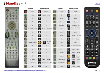 Below, we will show you the correspondence between each button on the original remote control and the button that performs the same function on the replacement remote control. In some cases, you may need to press the SHIFT key before pressing another button to perform certain actions. These additional functions are often not widely used and are included to facilitate understanding of the replacement remote control, or because the original remote control has more buttons than its equivalent.