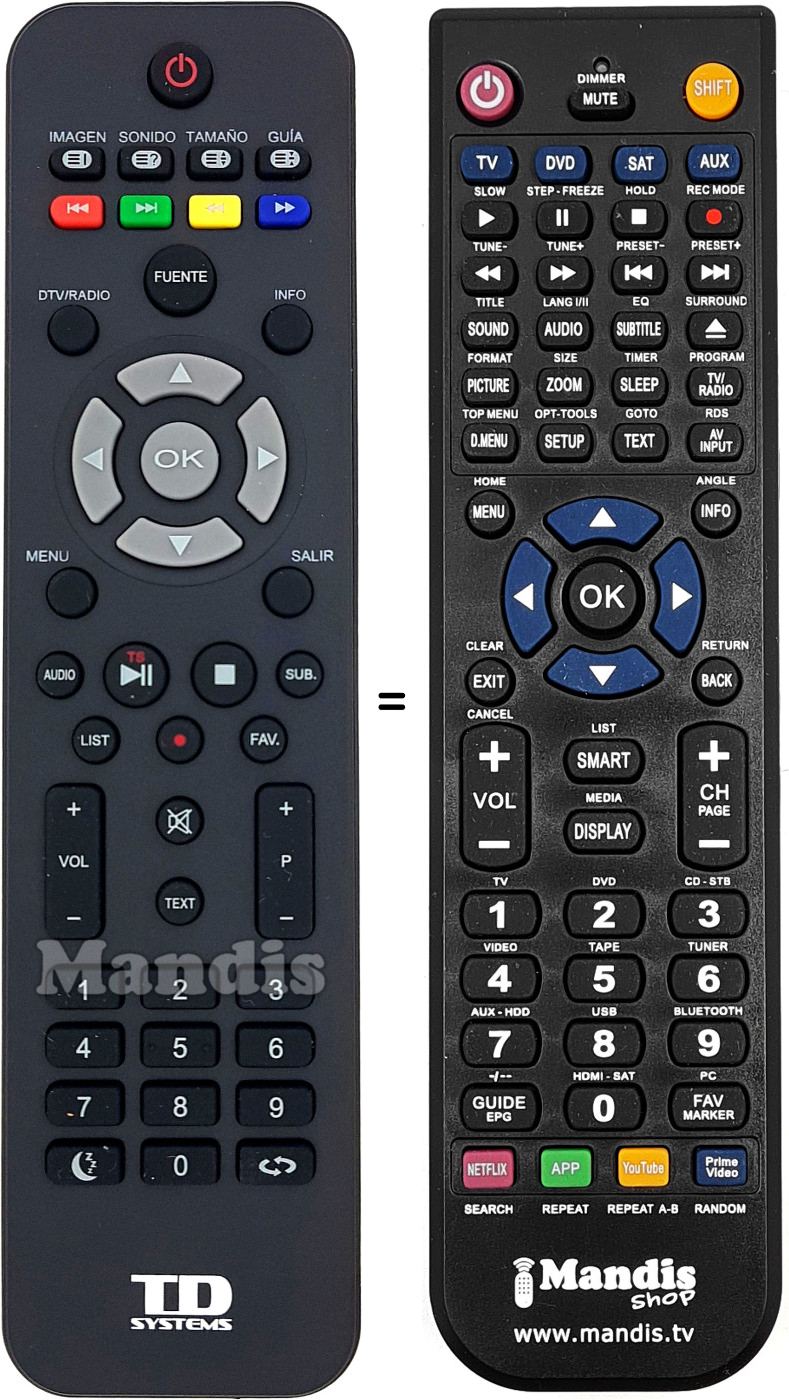 Remote control to replace the original and all its functions.