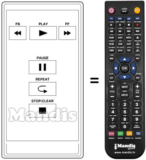 Remote control to replace the original and all its functions.