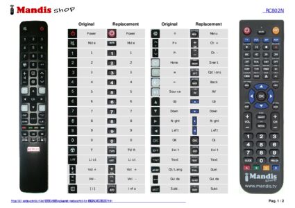 This remote control fully replaces your RC802N (04TCLTEL0252) and offers all the functions of the original.