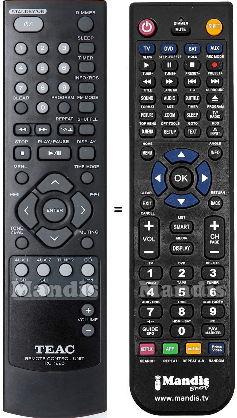 Home > Brands > Remote controls Teac > Remote control for TEAC RC-1226
