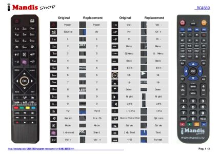 Below, we will show you the correspondence between each button on the original remote control and the button that performs the same function on the replacement remote control. In some cases, you may need to press the SHIFT key before pressing another button to perform certain actions. These additional functions are often not widely used and are included to facilitate understanding of the replacement remote control, or because the original remote control has more buttons than its equivalent.