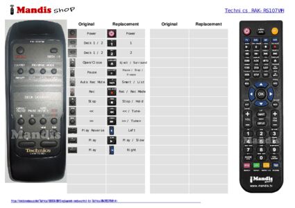 Home > Brands > Remote controls Technics > Remote control for TECHNICS RAK-RS107WH