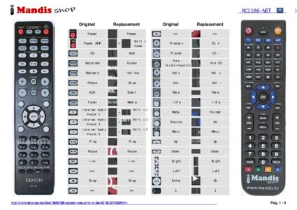 Below, we will show you the correspondence between each button on the original remote control and the button that performs the same function on the replacement remote control. In some cases, you may need to press the SHIFT key before pressing another button to perform certain actions. These additional functions are often not widely used and are included to facilitate understanding of the replacement remote control, or because the original remote control has more buttons than its equivalent.